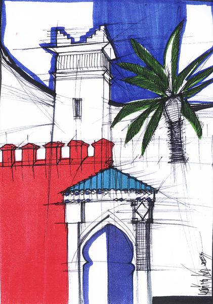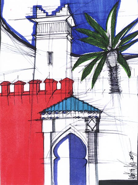 Zum anderen stellt er Zeichnungen aus, mit welchen er uns an seinen zahlreichen Reisen nach Marokko teilhaben lässt. Die Begegnungen mit der nordafrikanischen Architektur inspirierten Martin Mövius zu zahlreichen Skizzen, von denen in der Ausstellung eine Auswahl gezeigt wird.