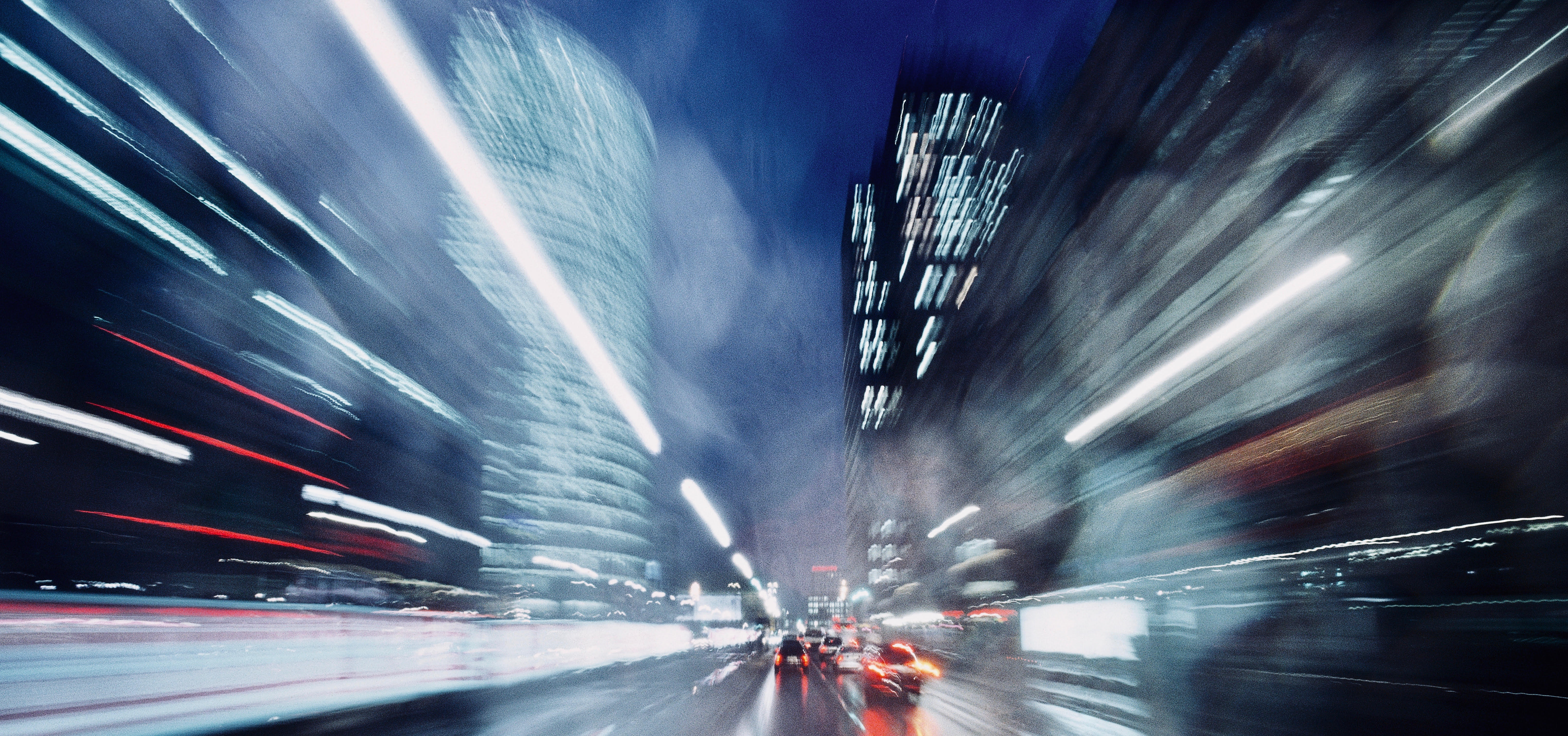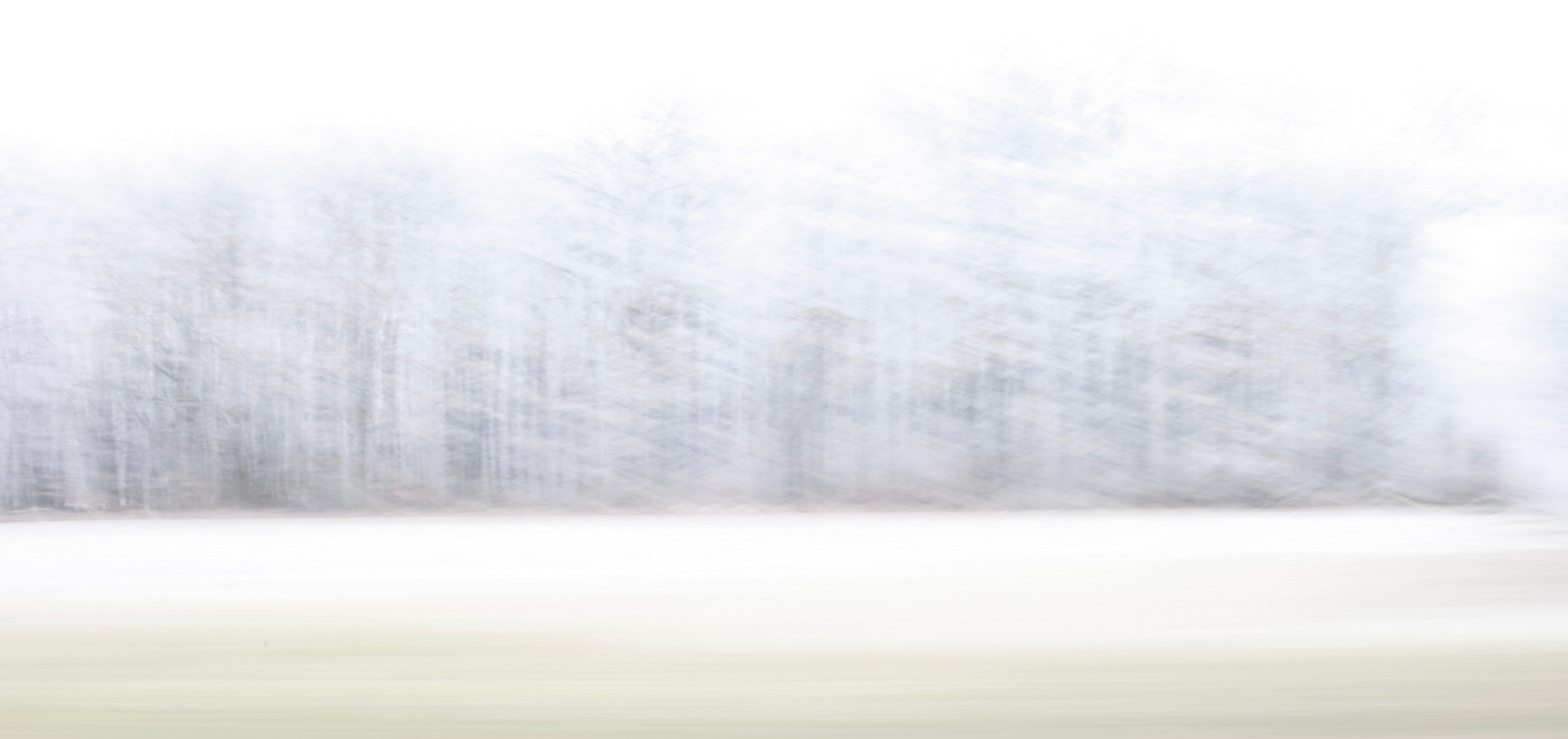 „Ich war auf dem Weg zu einem Job, habe im Zug gesessen, vor mich hin gedöst, aus dem Fenster geschaut, und plötzlich hat mich eine Stimmung, eine landschaftliche Komposition in den Bann gezogen und in mir die Vorstellung von einem möglichen Bild entfacht“, beschreibt Peter Hamel die Initialzündung für seine Bewegungsstudien. Er hält fest, was flüchtig war, was am Betrachter vorbeiflog. Diese Fotografien der zeitlichen Unschärfe lassen feste Strukturen verschwinden – Landschaften lösen sich mitunter komplett auf.