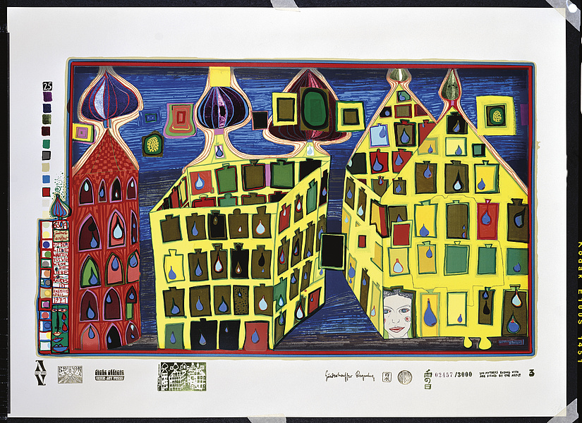 Friedensreich Hundertwasser wurde am 15. Dezember 1928 in Wien geboren. Die organisch-natürlichen Formen seiner ersten Bilder waren noch stark vom Jugendstil und der Bildsprache der Wiener Secession beeinflusst, richteten sich aber bereits früh gegen die als seelenlos verstandene Industrialisierung und Technisierung der großstädtischen Welt.