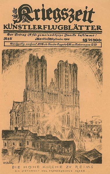 Was ist Wahrheit, was Lüge in Zeiten des Krieges? England prangert den Beschuss der Kathedrale von Reims durch die deutschen "Hunnen" an. Der deutsche Künstler Walter Bondy klagt, dass die perfiden Feinde ausgerechnet eine Kirche als Schutzbild für militärische Operationen nutzen. Das Gotteshaus als Kollateralschaden? Heute heißen tote Zivilisten schon so - und menschliche Schutzschilder sind zynischer Alltag in den Kriegen der Gegenwart.